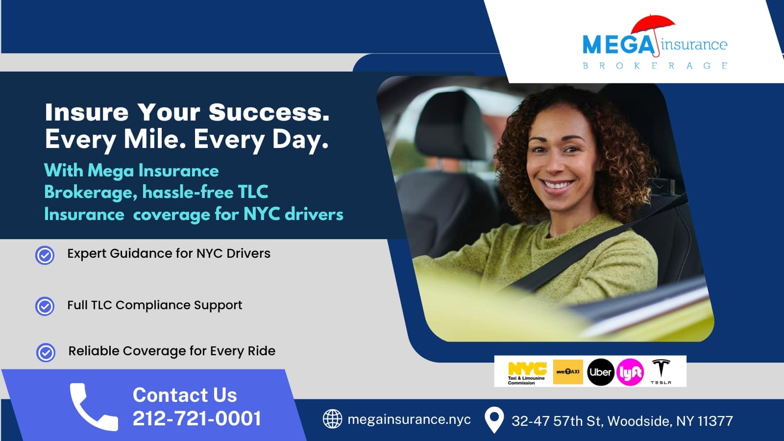 To legally drive for Uber or Lyft in New York City, having TLC-approved insurance is a must. Mega Insurance Brokerage specializes in helping rideshare drivers secure coverage that complies with all TLC requirements. Whether you drive part-time or full-time, and no matter your vehicle type, we’ll find an insurance plan that fits your specific needs and keeps you protected on every trip.